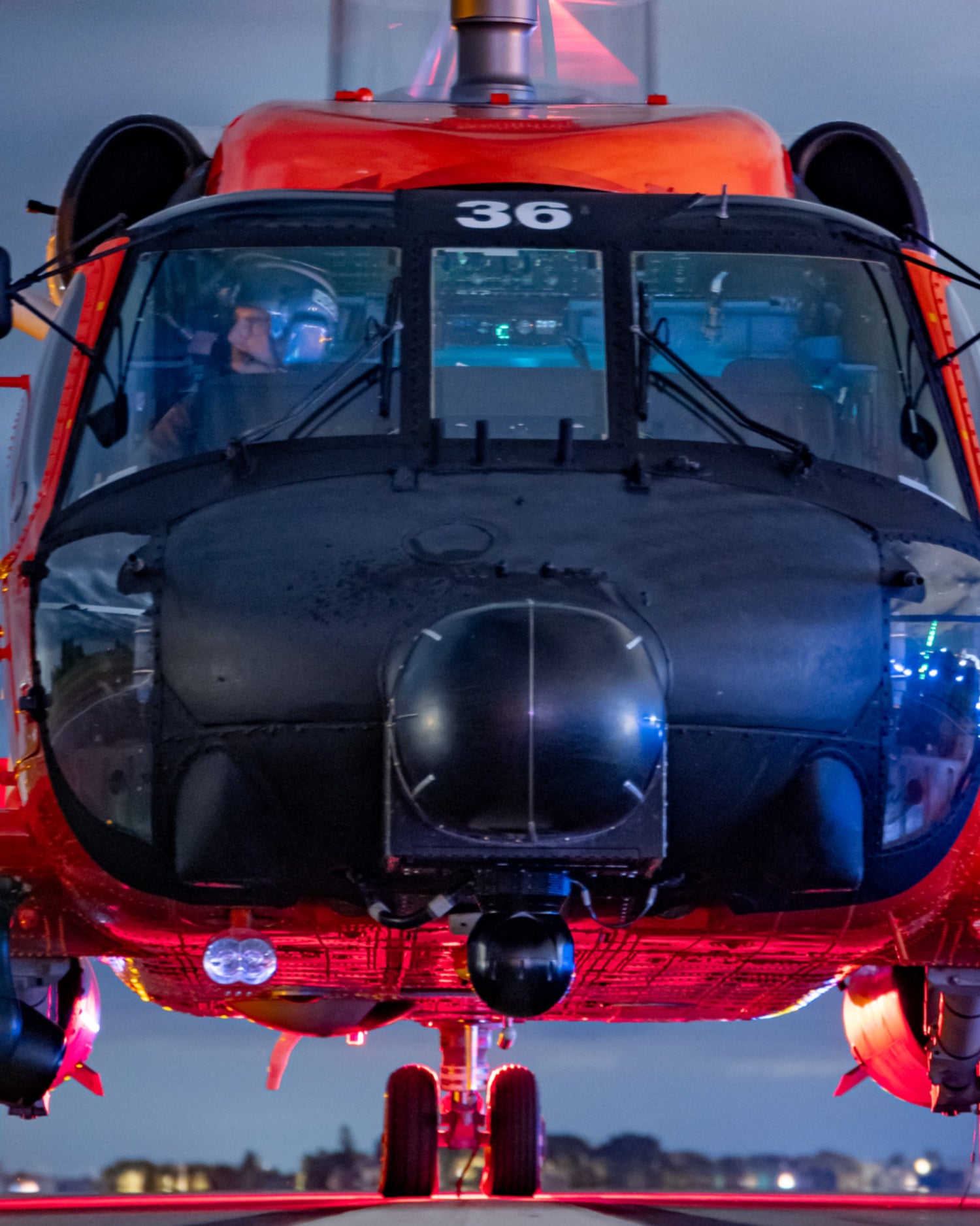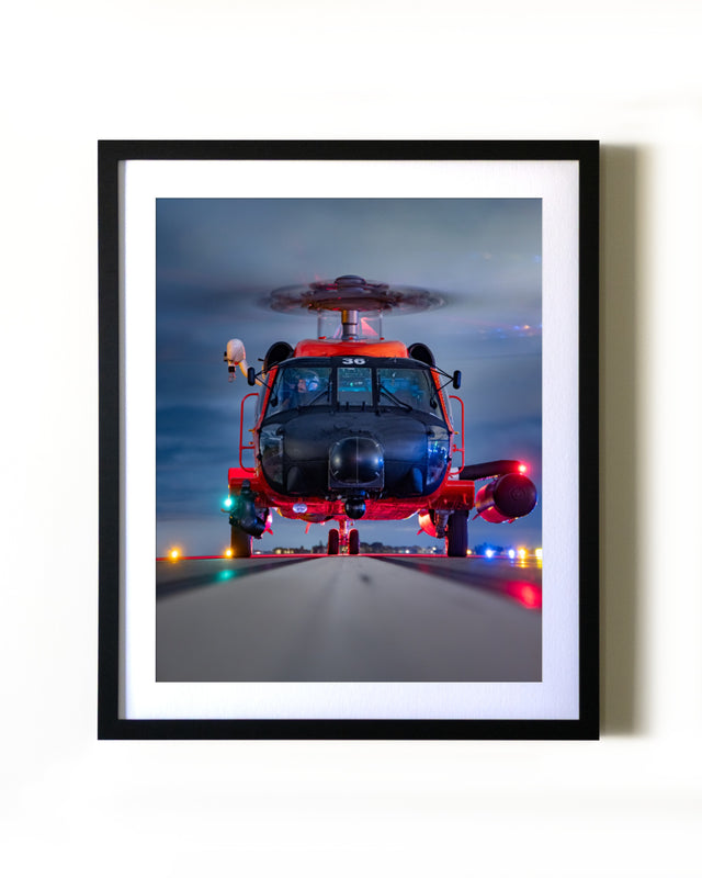 An Air Station Clearwater MH-60T Jayhawk helicopter on the runway at KSPG Albert Whitted Airport