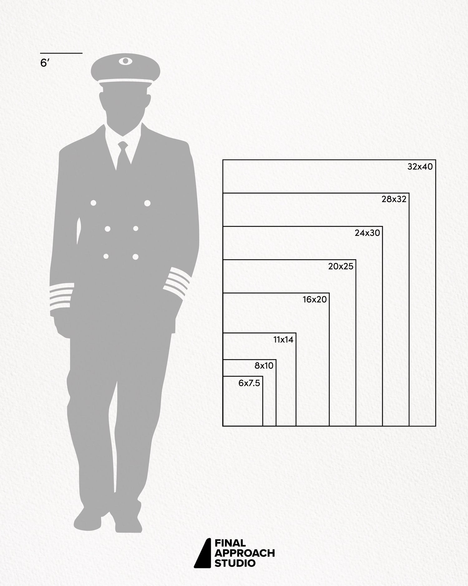 Framed prints with a 2.5" white mat are 7.5" larger than the size selection on their width and height (ex. 24x36 = 31"x43" in frame).